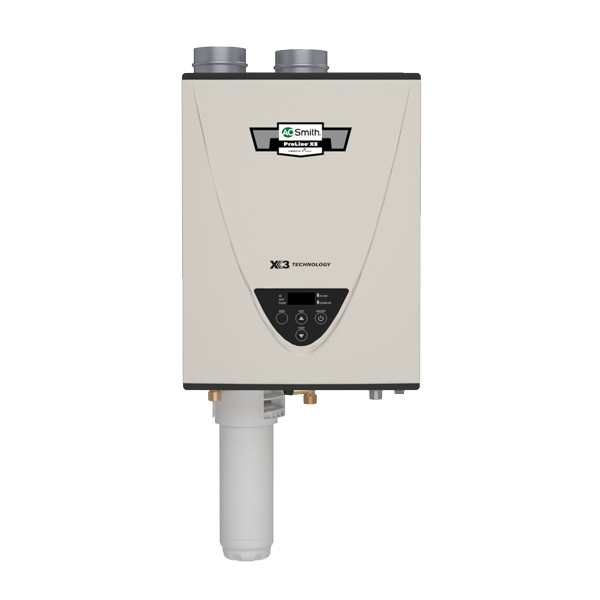 The ProLine® XE Condensing Ultra-Low NOx Indoor Tankless Water Heater with X3® Scale Prevention Technology delivers continuous hot water, while protecting against scale build-up. Scale is the #1 enemy for tankless technology. With normal use, typical gas tankless water heaters begin to scale up over time. Scale reduces efficiency and increases annual cost of operation. Regular descaling is required to keep typical gas tankless water heaters operational, leading to ongoing maintenance costs. An expert in both water heating and treatment, A. O. Smith has combined the two technologies to achieve unparalleled protection on our condensing gas tankless water heaters with X3® Scale Prevention Technology. The technology prevents scale buildup, meaning virtually zero lifetime descaling maintenance and up to $2,800 in maintenance cost savings over the life of the product. X3® Scale Prevention Technology provides protection for the heat exchanger—making it last three times longer than a standard tankless water heater and maintaining like-new performance. A. O. Smith stands behind this revolutionary product with the industry’s first-ever “Peace of Mind” limited warranty. Unlike competitive warranties, this 15-year limited warranty covers scale-related failures should they occur. The ATI-540HX3-N tankless water heater uses up to 199,000 BTU/hr of natural gas to deliver an endless supply of hot water for a 3-bath home in northern climates and up to a 4-bath home in southern climates (one shower head per bath). Our new condensing gas tankless line features X3™ Scale Prevention Technology to last three times longer than other tankless models without X3 Technology. This heater is extremely efficient with a Uniform Energy Factor of 0.93, and complies with Ultra-Low NOx regulations.. With an industry-leading 15-year limited warranty, the ATI-540HX3-N tankless water heater provides years of hot water through innovation and quality. These tankless water heaters utilize commercial-grade copper alloy for the heat exchanger tubing and are approved to work with an external recirculation pump and cross-over valve. Certified up to 10,100 ft. altitude. A. O. Smith’s ProLine® water heaters are residential products built to commercial-grade standards and available only to purchase through professional wholesalers and contractors.